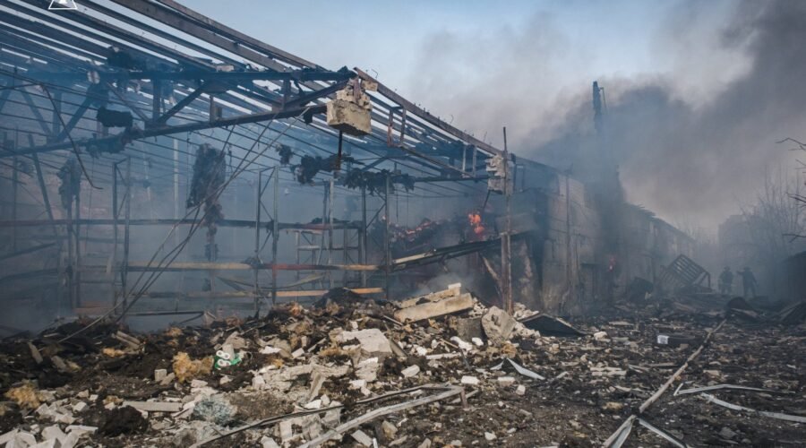 За даними ДСНС, три керовані авіабомби зруйнували складську будівлю, спричинивши масштабну пожежу.