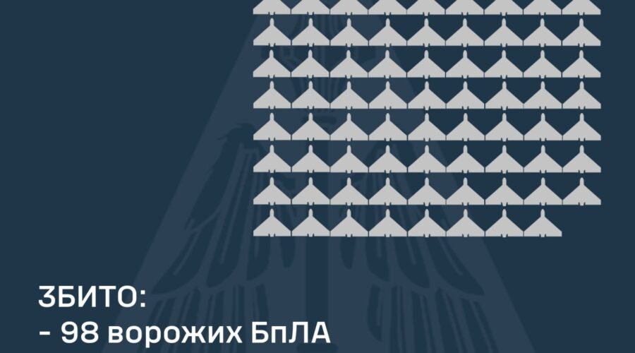 “За передніми даними, станом на 09:30 підтверджено збиття 98 ударних БпЛА у Харківській, Полтавській, Сумській, Чернігівській, Черкаській, Київській, Житомирській, Хмельницькій, Вінницькій, Тернопільській, Рівненській, Дніпропетровській, Запорізькій, Одеській та Херсонській областях”, – звітують військові.