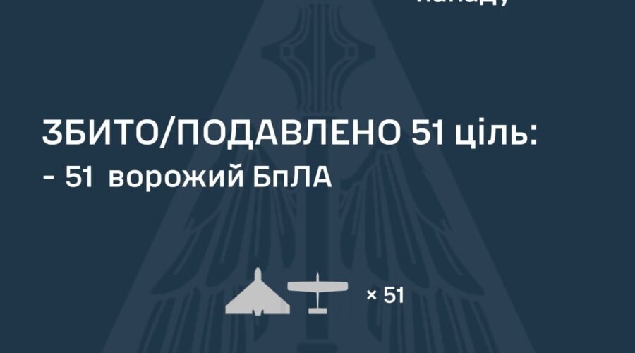 За попередніми даними, станом на 09:00 протиповітряною обороною збито/подавлено 51 ворожий БпЛА на півночі та сході країни.
