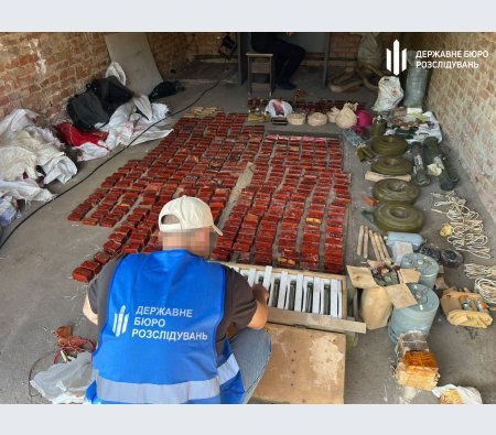 У гаражі було понад 100 кг вибухівки, міни та боєприпаси.