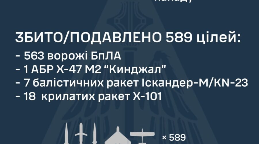 Сили ППО збили 589 ворожих цілей, зокрема: