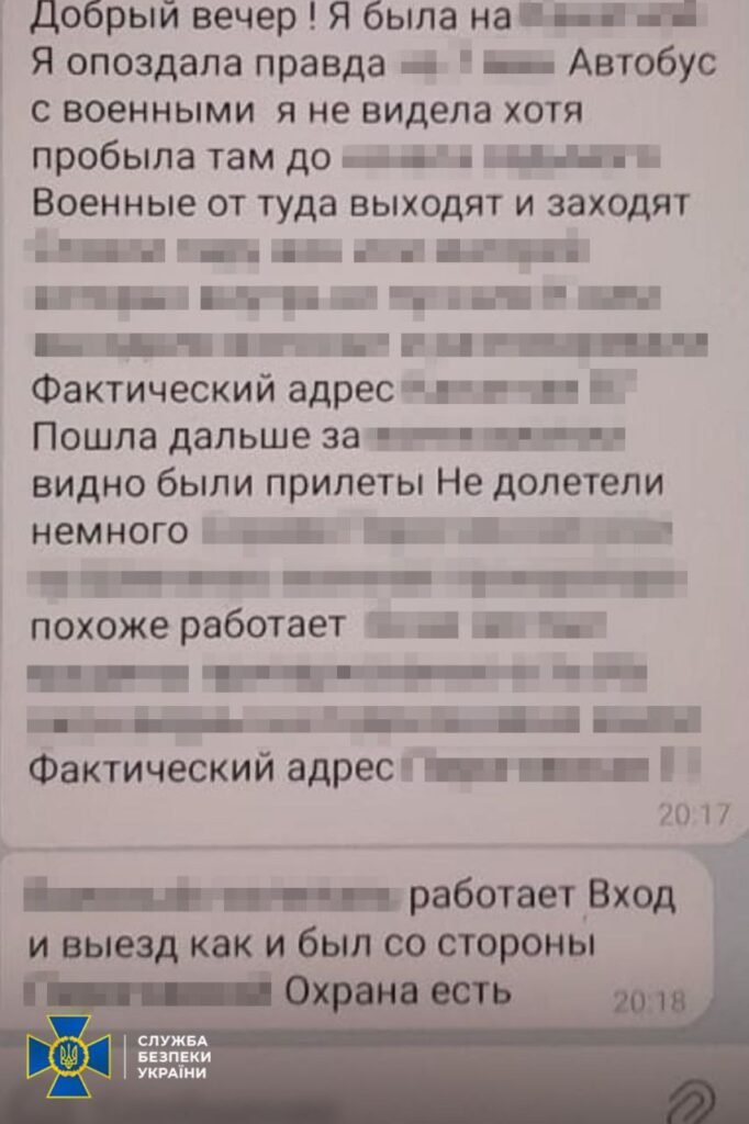 Серед “цілей»”росіян були підрозділи СБУ та ЗСУ, які беруть участь у бойових діях на південному фронті. Жінку затримали “на гарячому” — під час фотографування транспорту біля оборонного об’єкта.