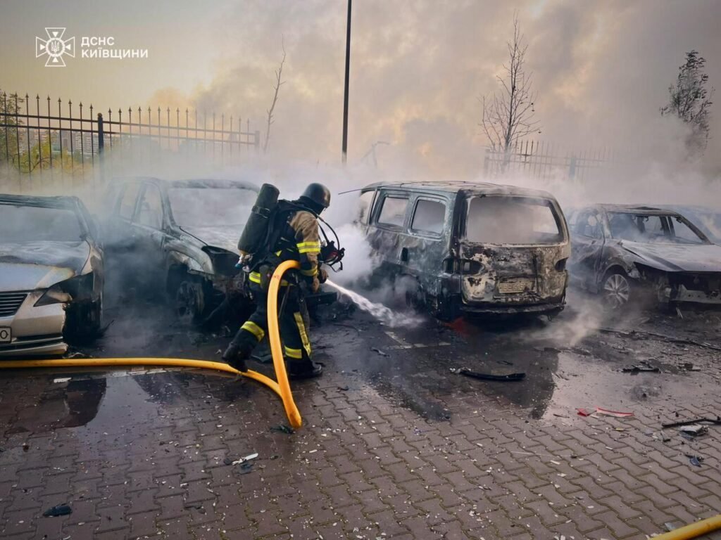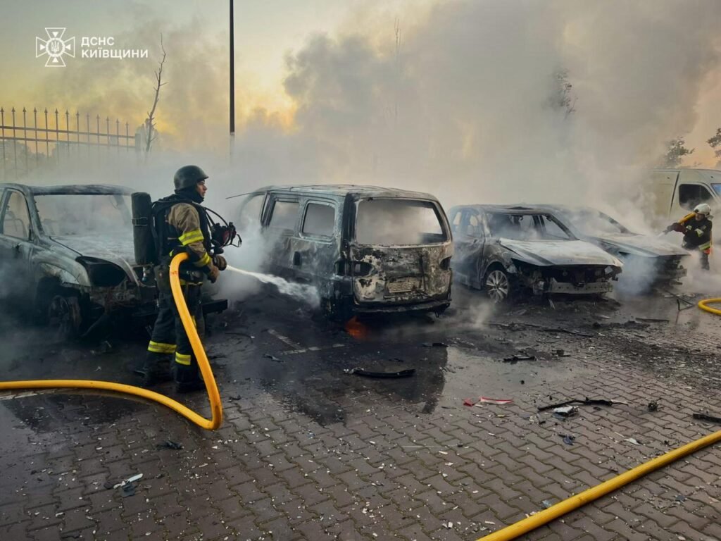 У Бучанському районі унаслідок атаки знищено 5 автомобілів, ще 8 пошкоджено. Також вибито скління у багатоповерховому будинку.