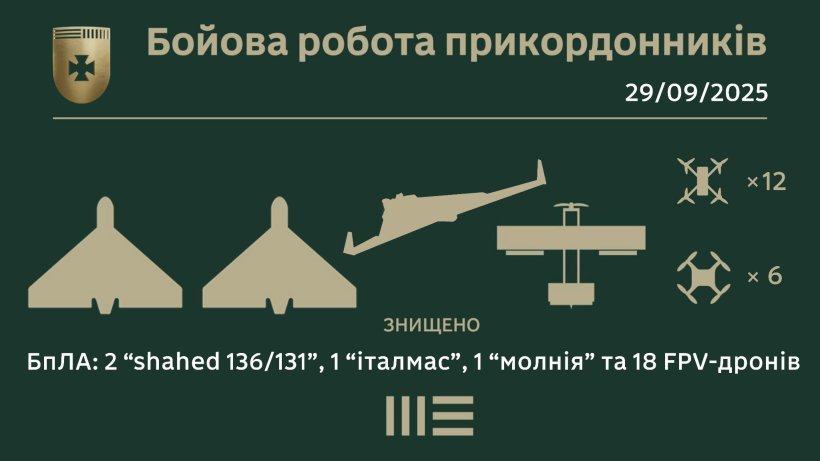 Серед збитих цілей два ударні дрони-камікадзе “шахед”, 1 “італмас” та 1 “молнія”.