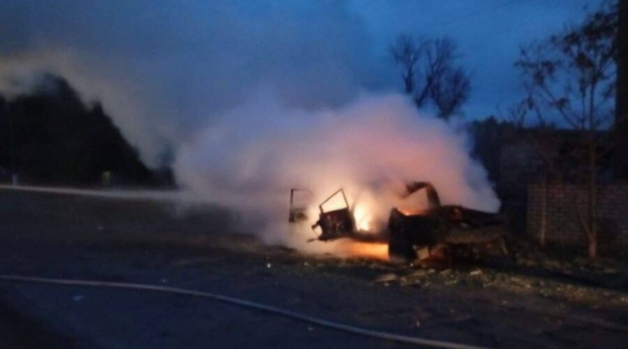 Безпілотником росіяни вгатили також по Покровській громаді Синельниківщини. Вогнем охопило авто. Минулося без жертв.
