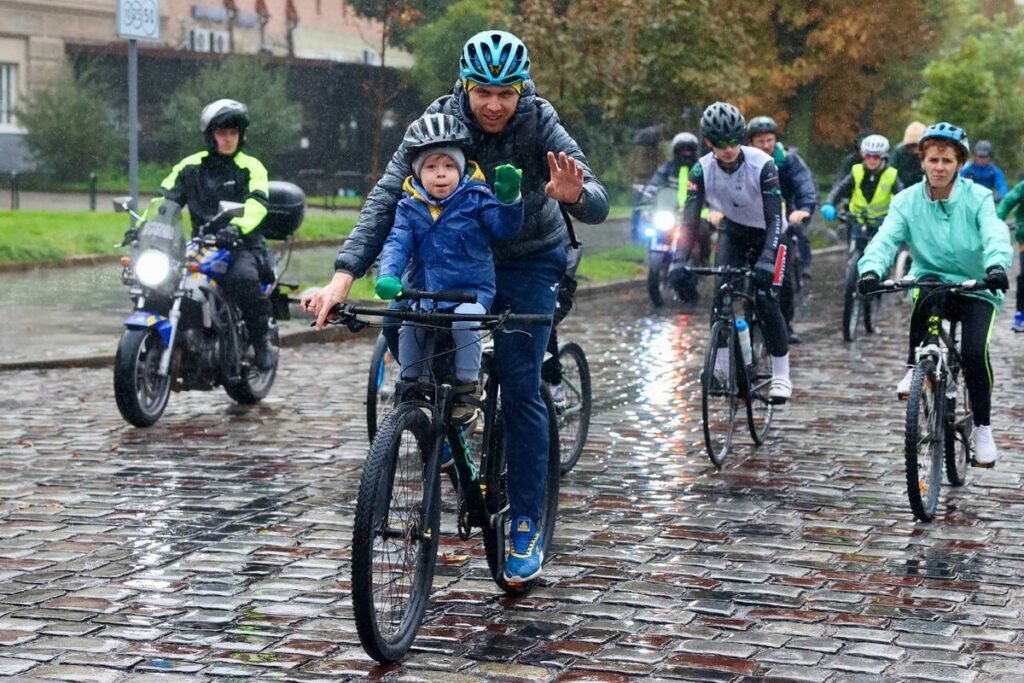Учасники, серед яких чимало батьків з дітьми, проїхались на велосипедах маршрутом: просп. Свободи, 28 → пл. Різні → просп. Чорновола → пл. 700-річчя → розворот → просп. Свободи.