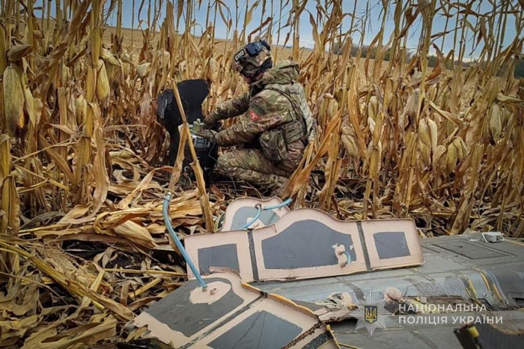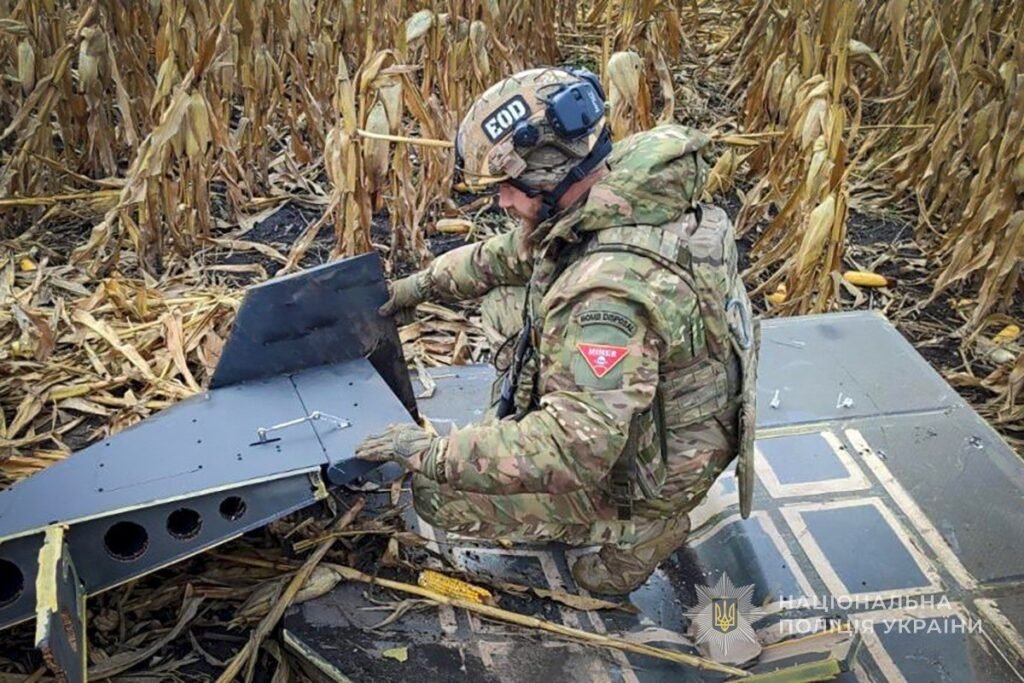 Прибувши на місце, і провівши огляд знайдених решток безпілотного літального апарату, вибухотехніки поліції вилучили його 50-кілограмову осколково-фугасно-запалювану бойову частину, провели її знешкодження та вивезли вибухівку в безпечне місце для знищення.