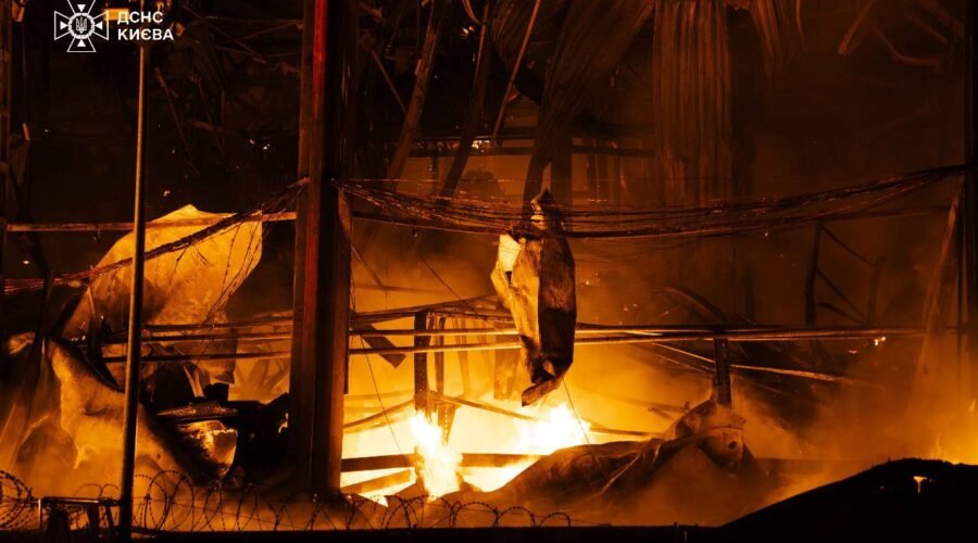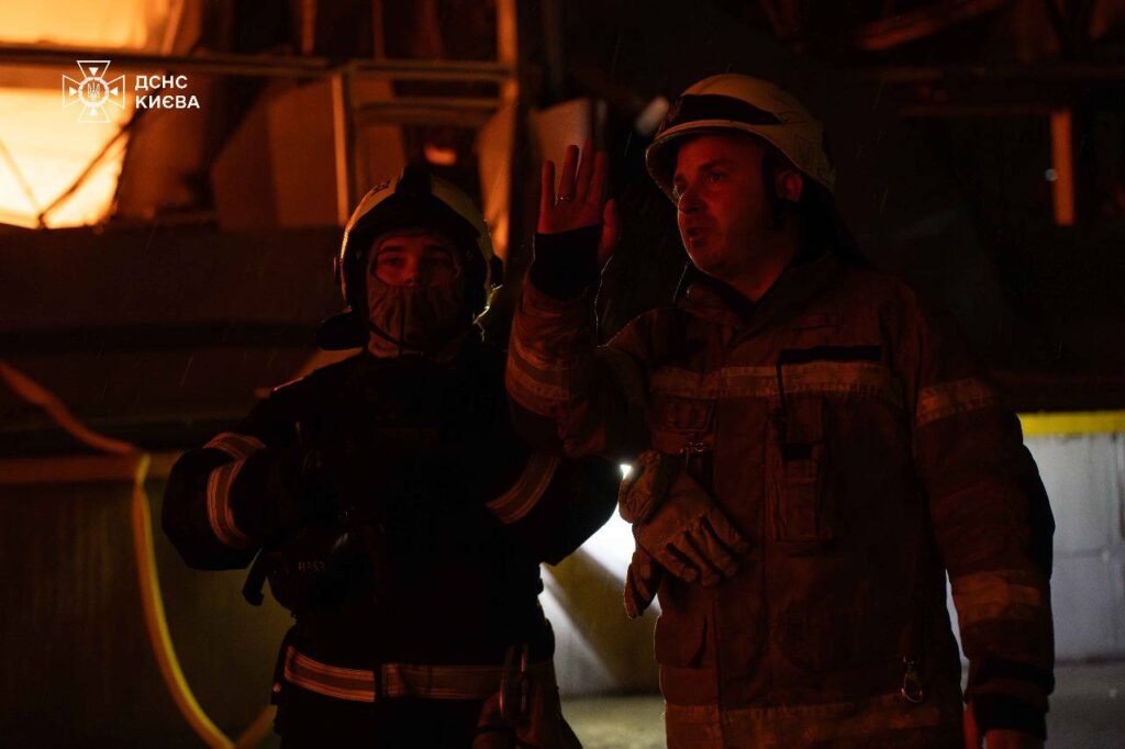 Згодом очільник КМВА Тимур Ткаченко повідомив, що внаслідок атаки вирують пожежі на кількох локаціях в лівобережній частині міста.