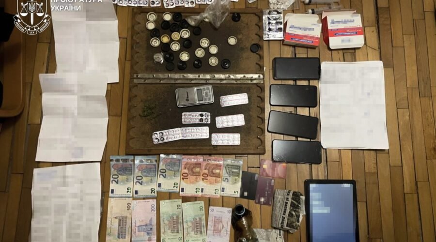 «Під час санкціонованих обшуків вилучено понад 70 пігулок рецептурних медичних препаратів, які містять метадон, мобільні телефони, готівку та інше. Знайдену рослинну речовину зеленого кольору скеровано для проведення експертизи», – додають у прокуратурі.