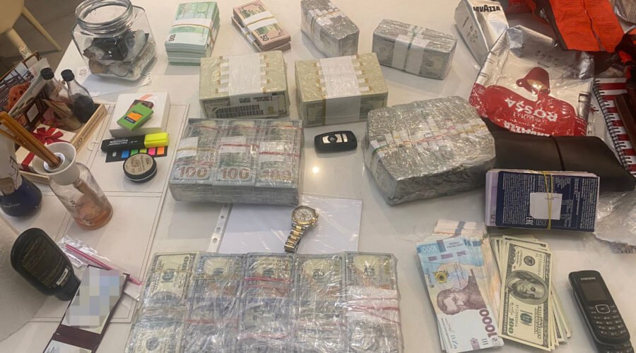 Під час санкціонованого судом обшуку за місцем проживання підозрюваної виявлено та вилучено 880 тис. дол. США, 210 тис. євро (що загалом становить понад 46 млн грн) та інші коштовності.