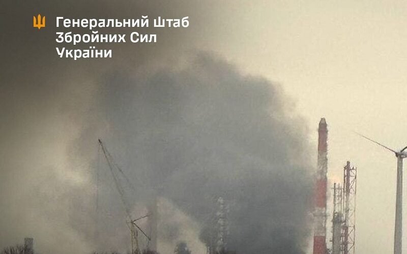 За даними Генштабу, на території об’єкту зафіксовано вибухи та пожежу.