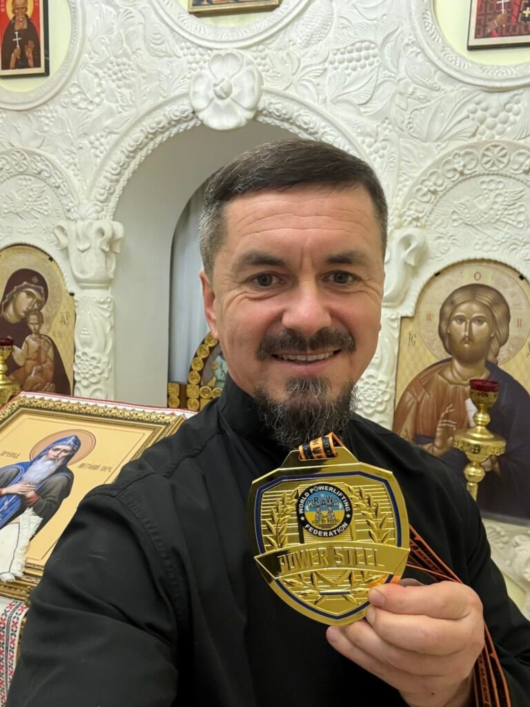 Отець Макарій Дутка встановив новий рекорд у жимі лежачи в екіпіруванні