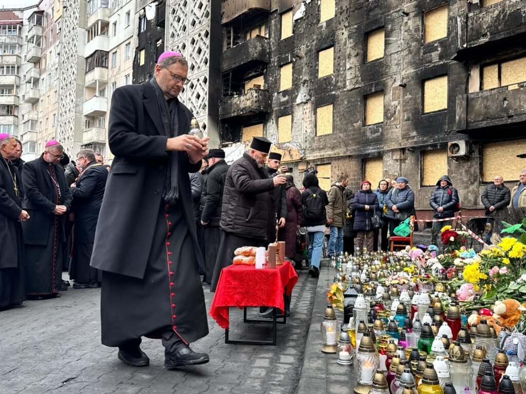Молитва відбулася на подвір’ях двох будинків, які 19 листопада постраждали через російську атаку