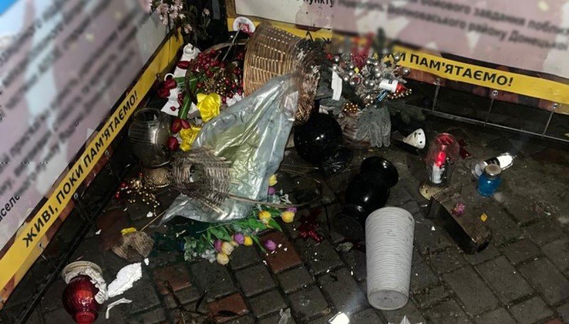 Поліція міста Ланівці на Тернопільщині отримала повідомлення про те, що в центрі міста невідома жінка поводиться неадекватно та розкидає квіти й лампадки на Алеї пам’яті, де розміщені світлини загиблих Героїв.