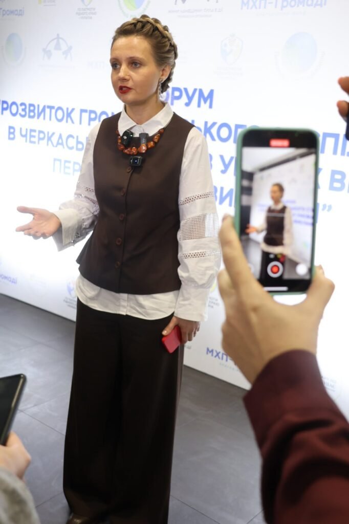 Голова Ради розвитку громад фонду та депутатка Черкаської облради Тетяна Волочай розповіла про оновлену стратегію організації. Вона включає чотири ключові напрями: