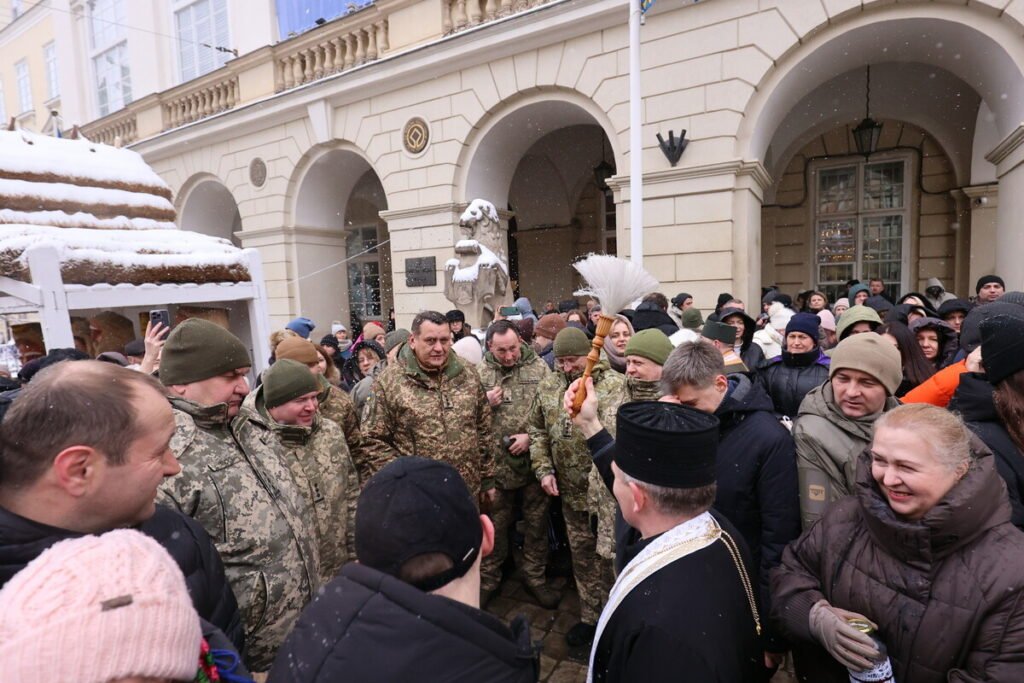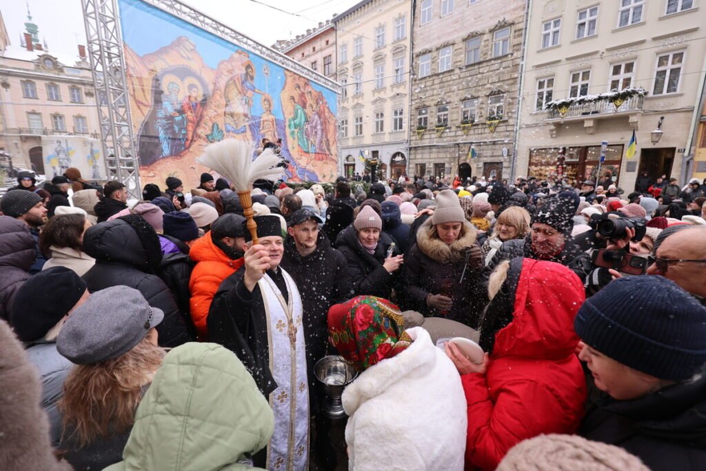 Після освячення води капелани поблагословили та окропили усіх людей, які прийшли на площу Ринок. Також був присутній посол Румунії в Україні Александру Віктор Мікула, який сьогодні завітав до Львова.