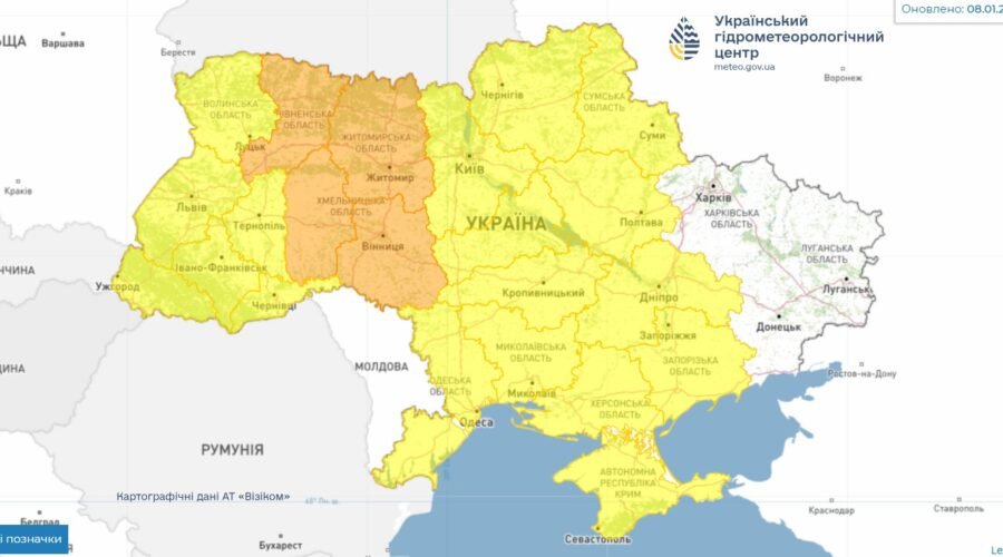 У низці областей України оголосили “помаранчевий” рівень небезпеки через сильні хуртовини та вітер