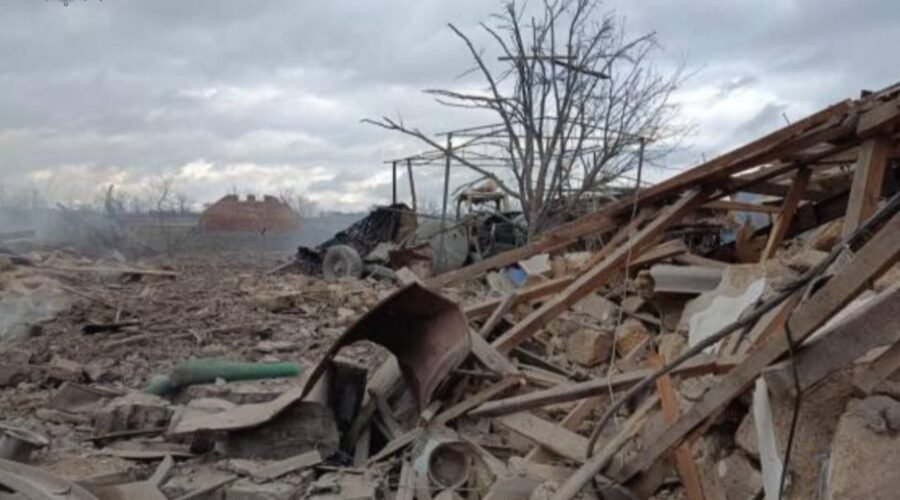 Зруйновані нежитлові будівлі, вибуховою хвилею та уламками пошкоджений житловий будинок.
