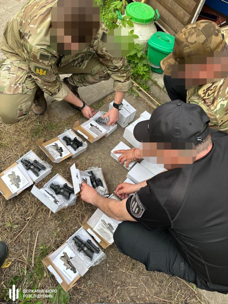 Під час розслідування працівники ДБР провели понад 20 обшуків, вилучили непридатні коліматорні приціли та призначили понад 70 експертиз. Усіх учасників злочинної організації затримали в різних регіонах України — на Донеччині, Дніпропетровщині, Харківщині та в Києві.