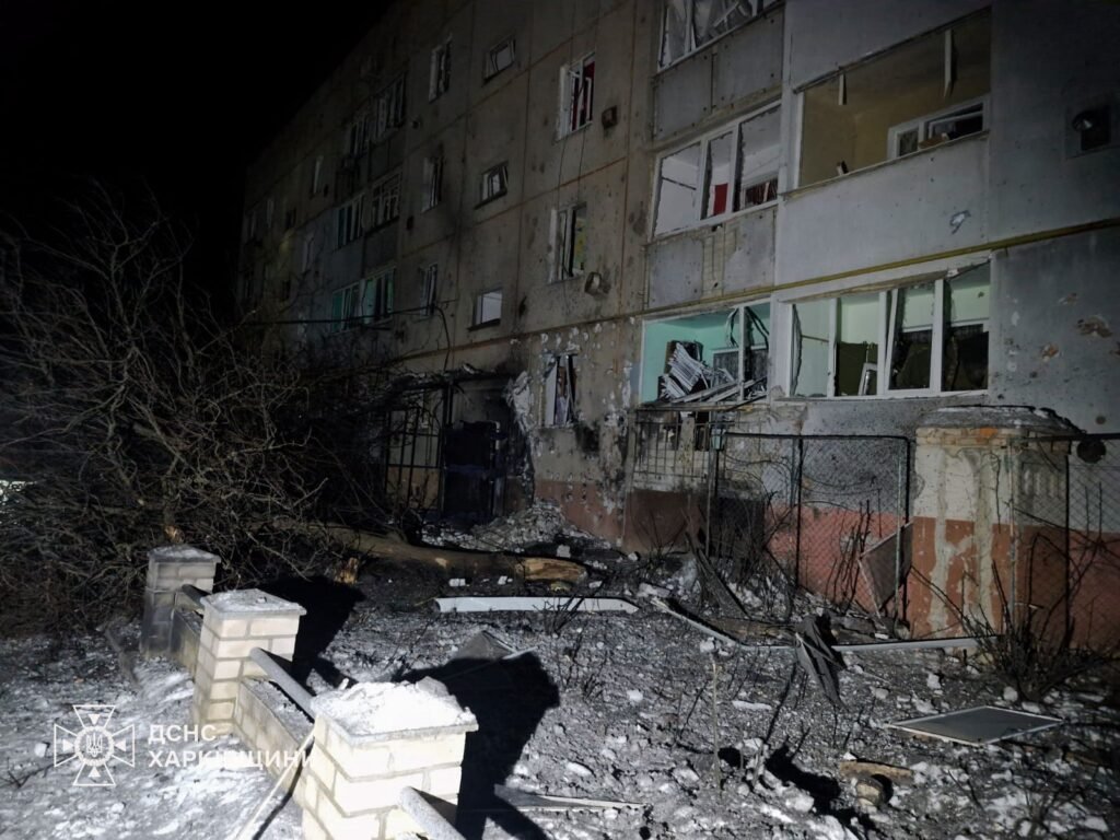 “Вночі 17 січня в населеному пункті Великий Бурлук Куп’янського району в результаті атаки виникли руйнації та пожежі були пошкоджені приватний та багатоповерховий житлові будинки, та складська будівля”, – кажуть в ДСНС.