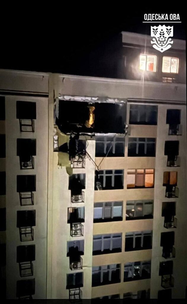Внаслідок нічної атаки безпілотників на Одещині уражено об’єкти критичної інфраструктури, також пошкоджено багатоповерхівку