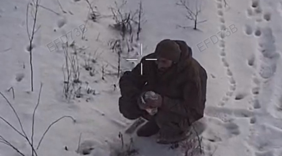 Під час переходу окупант почав замерзати та їсти сніг. Помітивши це, прикордонники скинули йому з дрона пляшку води та хімічні грілки для рук, аби той зміг дійти до точки евакуації.