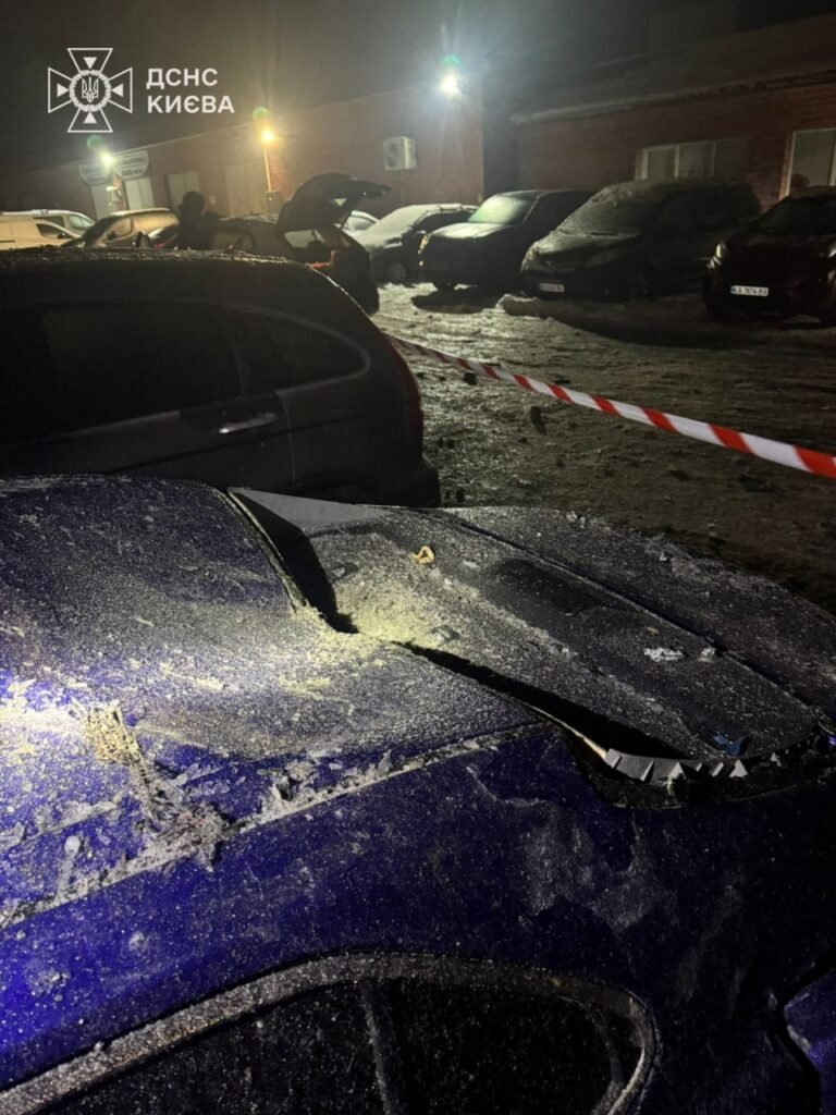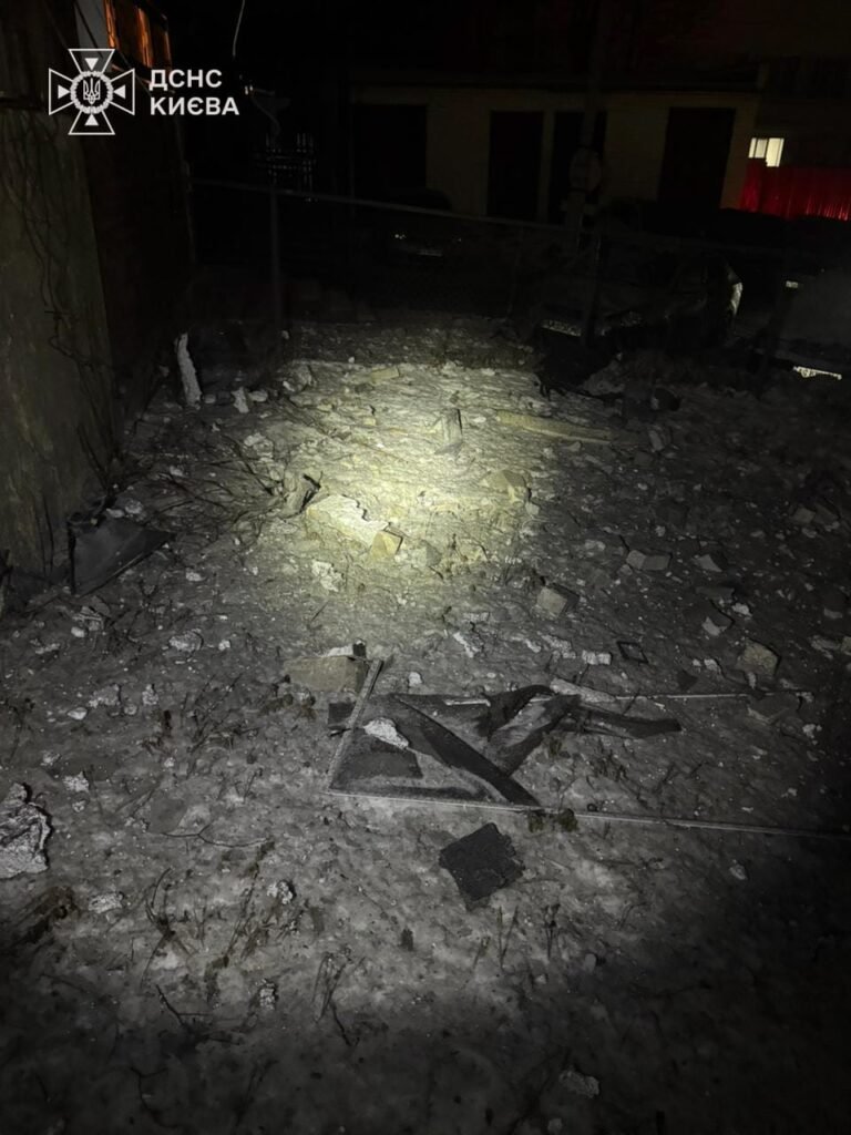 За даними рятувальників, внаслідок атаки у Голосіївському районі сталося влучання в торець 17-поверхового житлового будинку, без подальшого горіння.