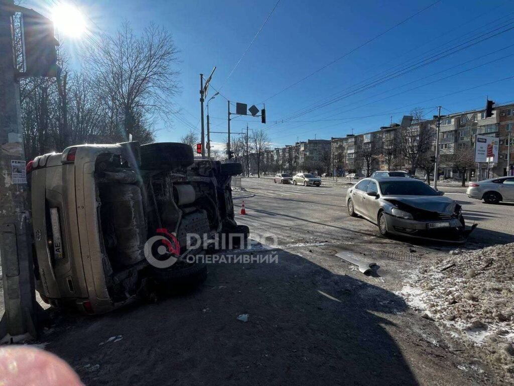 У Дніпрі автівка перекинулася на бік після ДТП