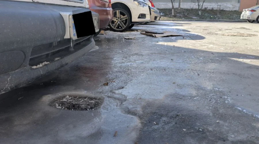 На житловому масиві Перемога у Дніпрі в одному з дворів помітили низку автомобілів, які колесами вмерзли у кригу, передає Хронікерс з посиланням на Dnepr.info.