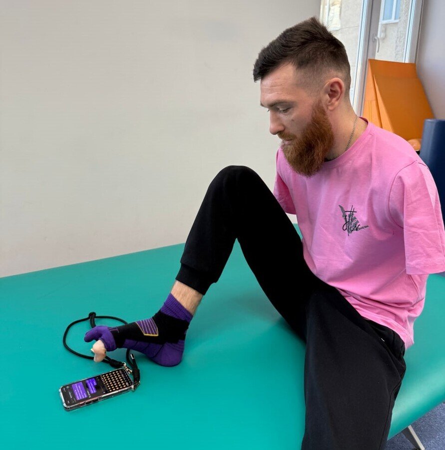 «На заняттях з ерготерапії ми вчимося новим способам виконання повсякденних завдань з використанням допоміжних засобів та компенсаторних стратегій. Не все дається легко, але Артем — надзвичайно вмотивований пацієнт», — зазначає ерготерапевтка UNBROKEN Христина Стецко.