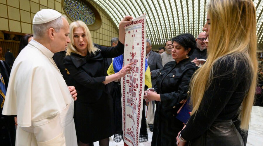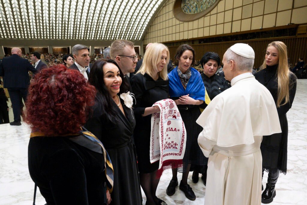 Під час візиту до Ватикану представниці Міжнародного жіночого руху “За сімейні цінності” подякували Папі за його підтримку України та передали унікальний гастрономічний рушник, який створили разом із Благодійним фондом “МХП-Громаді”