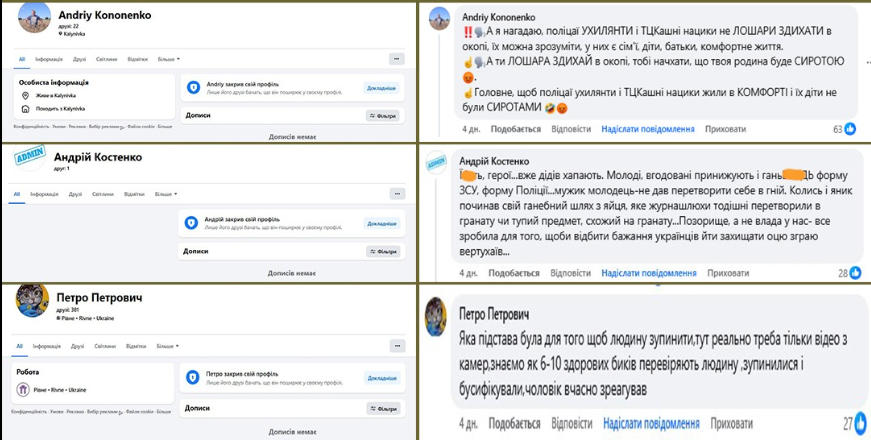 За даними центру, більшість коментарів залишають акаунти з обмеженим доступом до персональної інформації та мінімальною кількістю друзів. Профілі часто поширюють однотипний контент, спрямований на критику мобілізаційних процесів та дискредитацію органів державної влади.