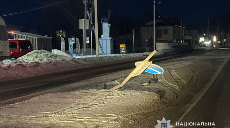 Як розповідають правоохоронці, 17 лютого близько 18:30 наряд поліції помітив автомобіль марки Nissan на іноземній реєстрації, який, рухаючись центральною дорогою Бережан, порушив правила дорожнього руху, не впорався з керуванням та збив дорожній знак.