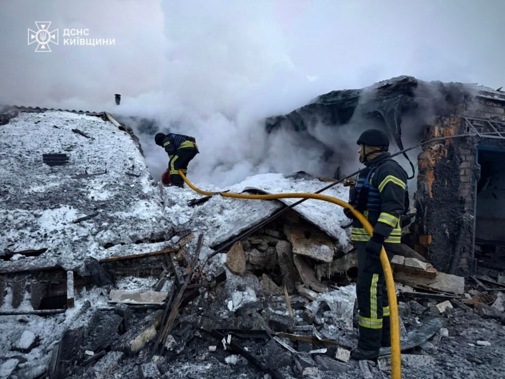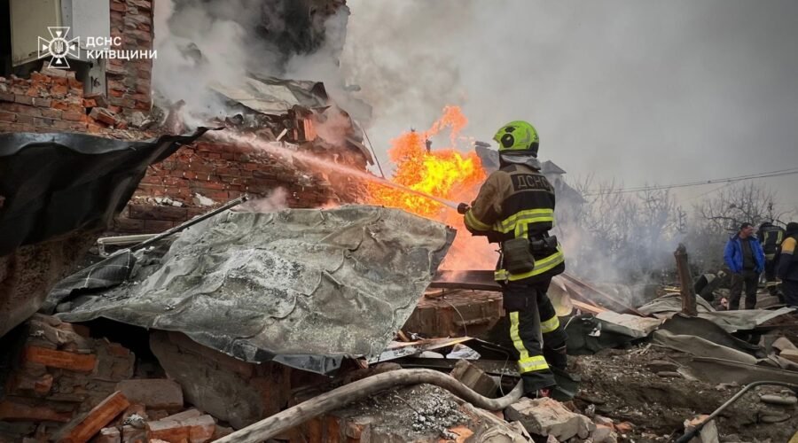 У ніч на неділю, 22 лютого, росіяни завдали масованого удару з повітря по Київщині, передає Хронікерс з посиланням на ДСНС України.