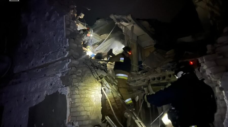 В результаті ударів за однією адресою зруйновано житловий будинок. Рятувальники деблокували з-під завалів тіла трьох людей.