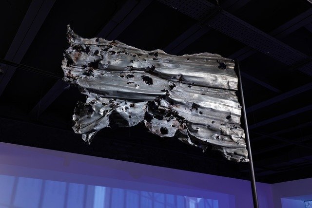 Метал, з якого виготовлено прапор, було привезено з теплоелектроцентралі (ТЕЦ) у Кривому Розі. Граніт, використаний для постаменту представленого на виставці прапора, походить із Коростишева — міста в Житомирській області, яке в травні зазнало масованої російської повітряної атаки, спрямованої проти цивільного населення.