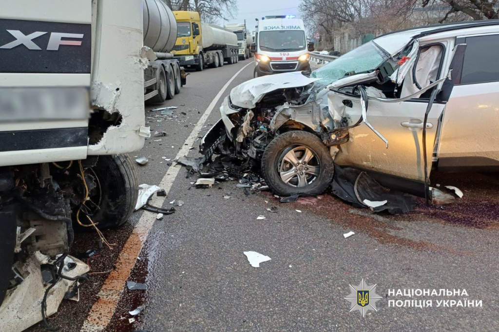 34-річний водій «Toyota RAV4» не обрав безпечної швидкості, не впорався з керуванням і виїхав на зустрічну смугу, де допустив зіткнення з вантажівкою «DAF XF» під керуванням 61-річного водія.