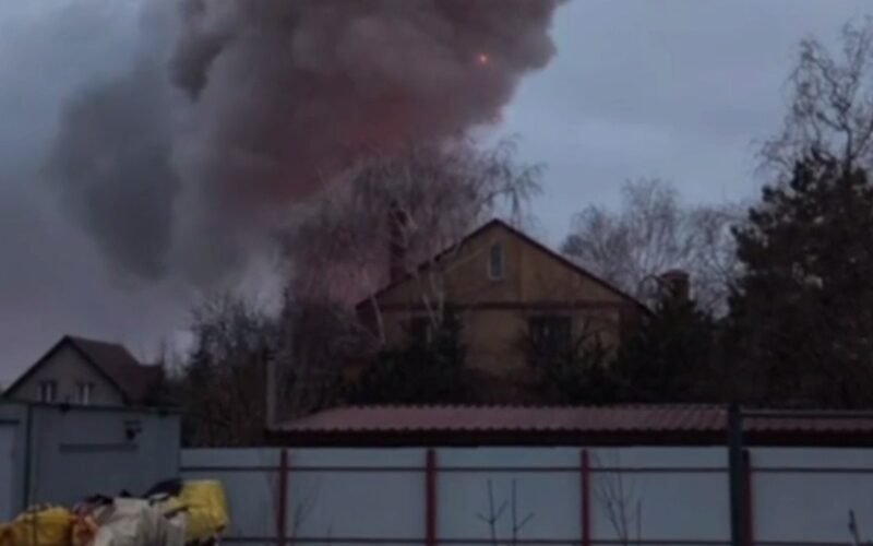 Мешканці міста чули кілька вибухів, після чого сталося сильне займання