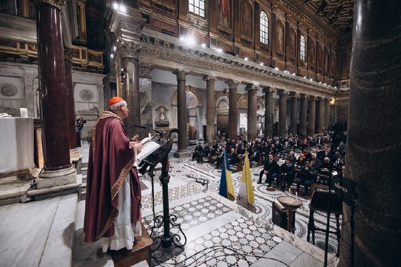 У Базиліці Санта Марія ін Трастевере відбулася меса, приурочена роковині вторгнення РФ в Україну, очолена Кардиналом Маттео Дзуппі