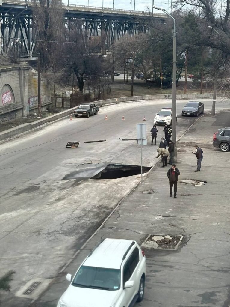 У Дніпрі в районі Старомостової площі виникло провалля в асфальті (ФОТО)