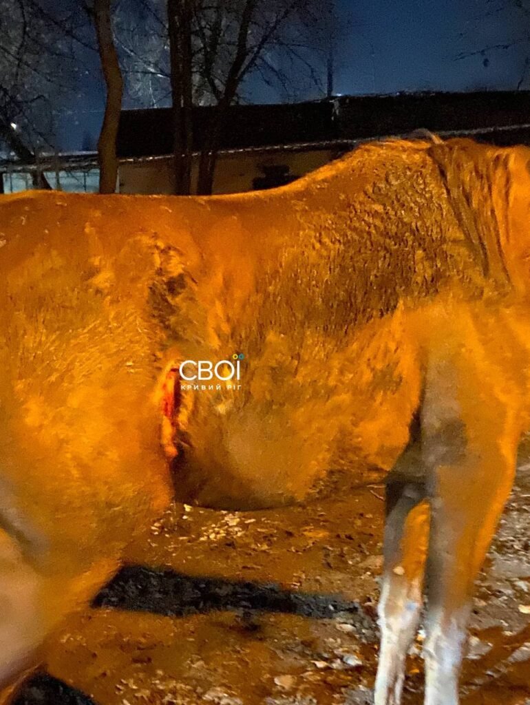 Мешканці міста побачили тварину з глибокою раною неподалік конюшні у Саксаганському районі. Працівники ферми підтвердили, що кінь їхній. Мовляв, зірвався з ціпка – збираються шукати.