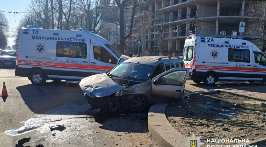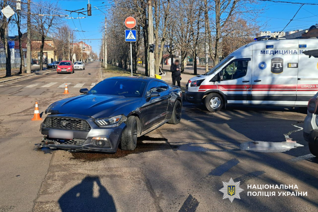 За попередніми даними, 23-річний водій автомобіля Ford Mustang, рухаючись бульваром Шевченка, виїхав на регульоване перехрестя на заборонений сигнал світлофора та зіткнувся з автомобілем Renault Logan.