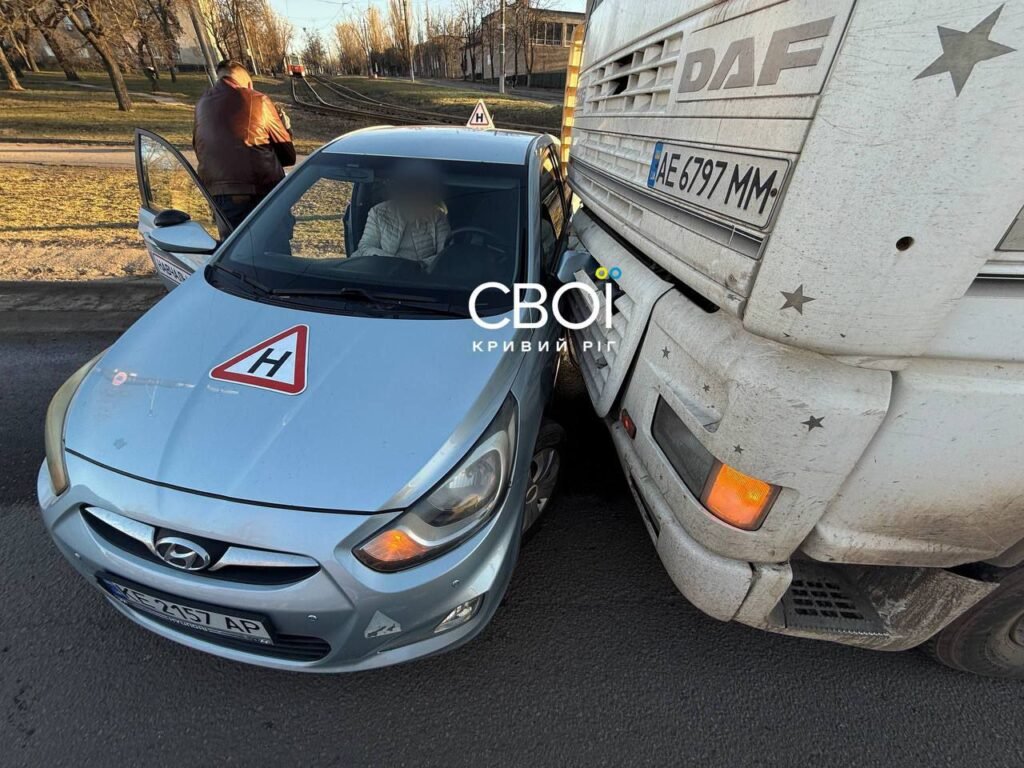 Зазначається, що аварія сталася на Нікопольському шосе, де вантажівка протягнула навчальний автомобіль на відстань близько 20 метрів.