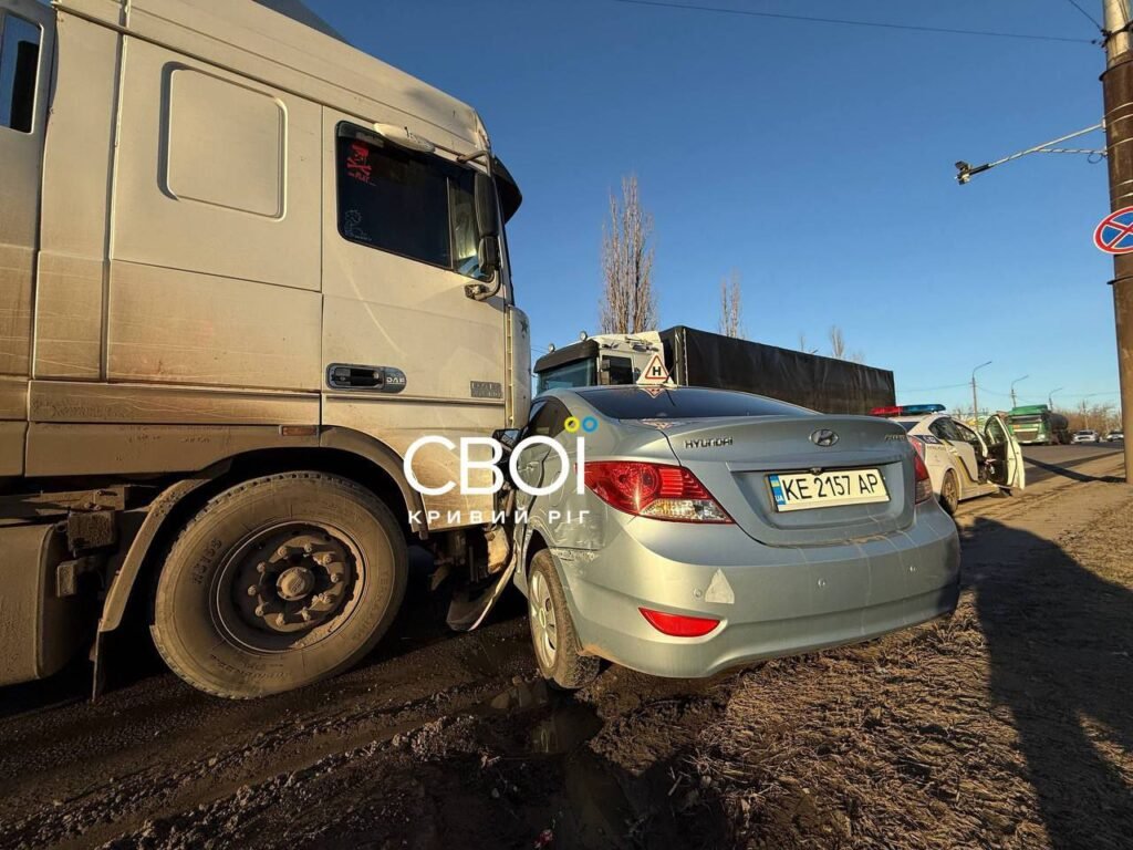 На одному з шосе Кривого Рогу сталося зіткнення вантажівка і легковика