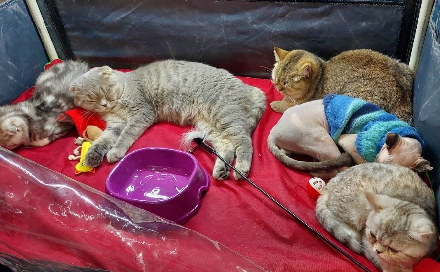 У виставковому павільйоні розташували десятки кліток із тваринами. Біля кожної — таблички з іменами, породою та титулами учасників. Власники котів охоче спілкувалися з відвідувачами, розповідали про своїх улюбленців та особливості догляду за різними породами.