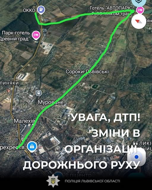 «Через ДТП в населеному пункті Дубляни Львівського району, яка сталась сьогодні зранку, рух автодорогою «Київ-Чоп» повністю перекрито. Об’їзд місця ДТП буде організовано через населені пункти Сороки-Львівські, Муроване та Ямпіль», – кажуть у поліції.