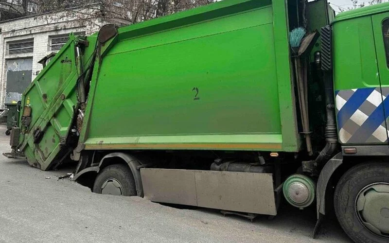 У Дніпрі місце, де провалився під асфальт сміттєвоз, перетворилося на величезну яму (ВІДЕО)