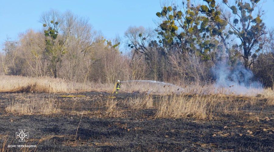 У селі Синявка Черкаського району загорілася суха рослинність та очерет на площі близько 300 квадратних метрів. Пожежу оперативно ліквідували, обійшлося без постраждалих.