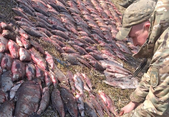 Наразі слідчі встановлюють усі обставини правопорушення. Улов, човен, мотоцикл і сітки вилучили.