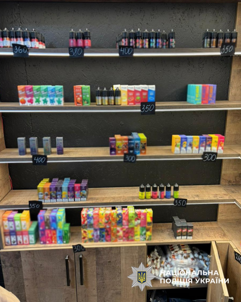 Під час обшуків у магазинах правоохоронці вилучили понад 7 тисяч ємностей із рідинами для вейпів, більш як 85 тисяч гривень готівки, а також комп’ютерну техніку, телефони, флеш-накопичувачі, чорнові записи та чеки.